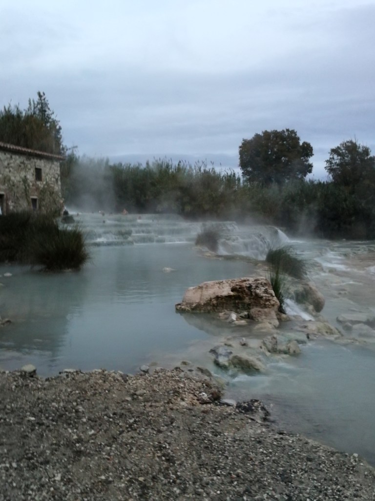 Lo ammetto, ho sentito qualche lamentela su questo posto: troppo affollato, qualche furto, “gente losca”. Sono le conseguenze del sovraffollamento turistico, è ovvio. Ma non si può certo negare alle Cascate del Mulino il loro fascino. Le Cascatelle di Saturnia, così chiamate dalla gente locale, costituiscono un sito naturalistico creatosi spontaneamente. Come? L’impatto dell’acqua , proveniente dal torrente termale Gorello, nella roccia calcarea ha creato nel tempo delle piscine di acque solfuree, sempre a una temperatura di 37°, evidente dal vapore presente in tutta la zona. Acque dalle proprietà benefiche importantissime a livello respiratorio, circolatorio, dermatologico e motorio: questo perché la sorgente si trova sul Monte Amiata, e nel loro tragitto sotterraneo fino a Saturnia si arricchiscono di minerali e sostanze naturali. All’interno di queste vasche naturali, ci sono molti sassolini sferici di roccia di travertino (perfetti per un fantastico massaggio plantare).