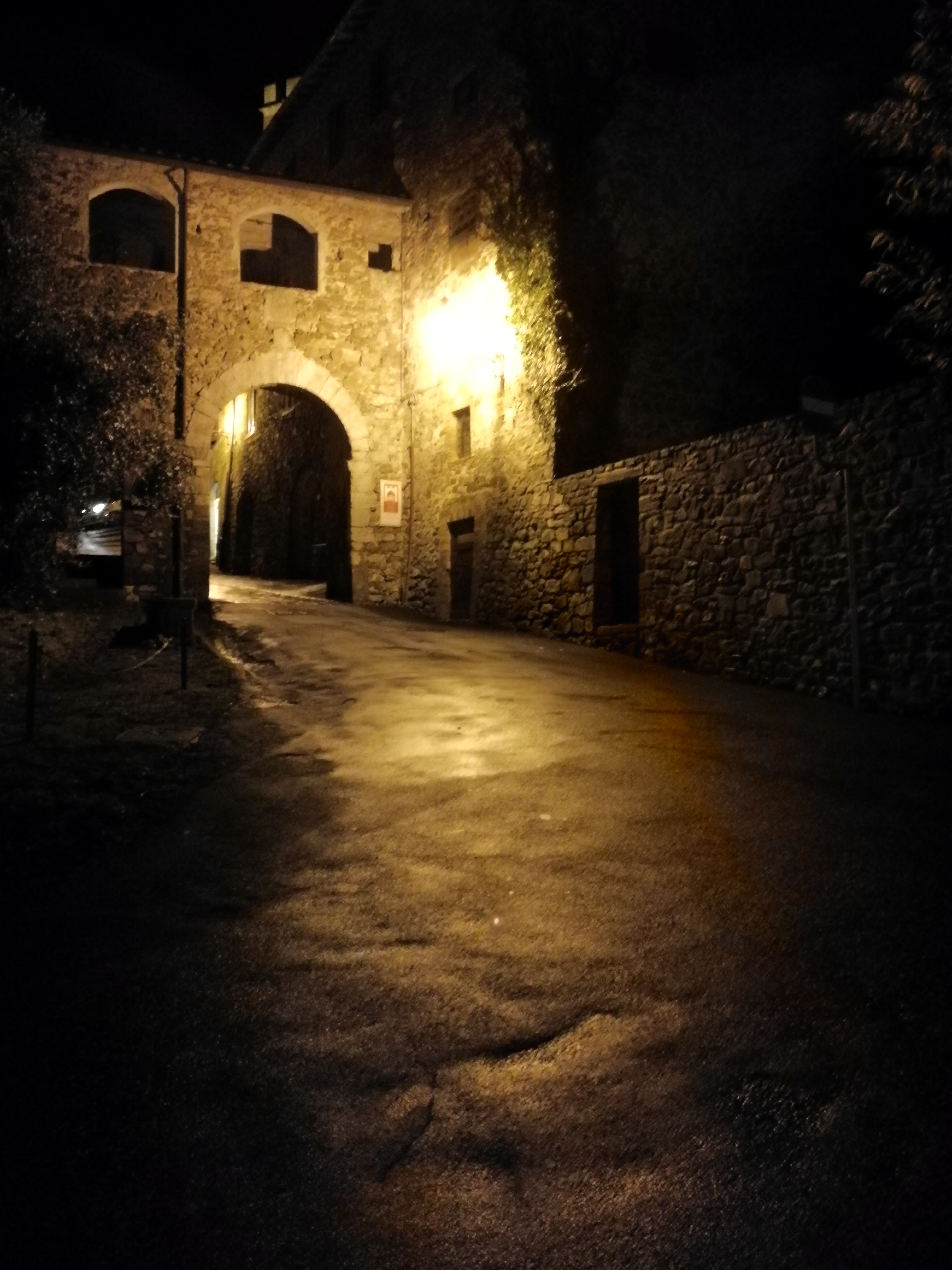 Passeggiando troviamo le mura, il campanile e il teatro. Quest’ultimo era anticamente il monastero della Pieve di San Lorenzo, del 1188, come ricorda una targa in marmo dipinta che, in poche parole, riesce anche a riassumere perfettamente l’essenza di questo piccolo borgo: