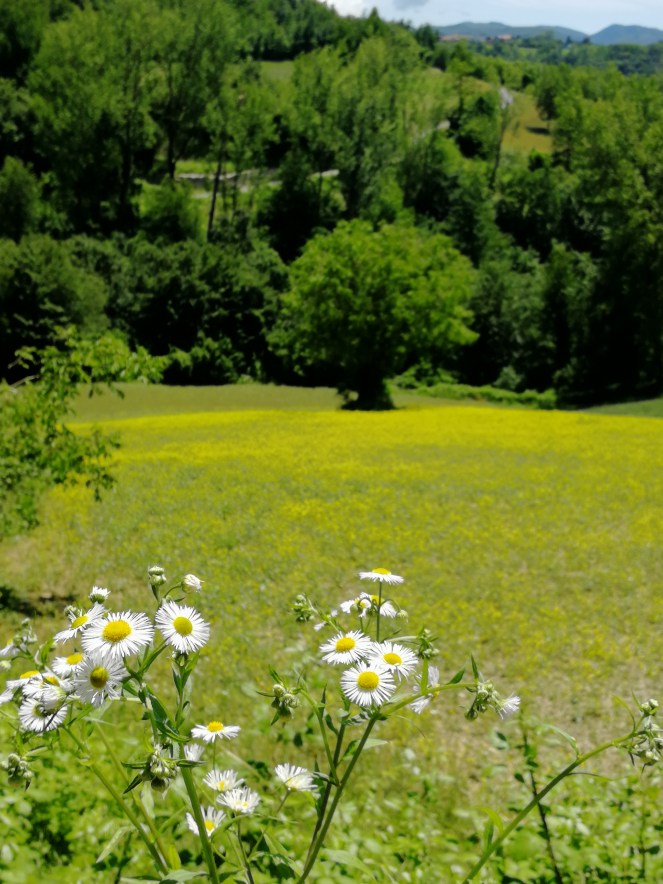Andiamo ora finalmente alla ricerca della nostra amata lavanda. I percorsi proposti dagli uffici turistici sono tre: il verde, il blu e l’arancione, in ordine crescente di difficoltà e tempistiche. Uscendo dalla Pieve, ci si ritrova sulla strada provinciale. Di fronte a noi si scorgono tre vie, tutte (inizialmente) asfaltate: sulla sinistra c’è una via in piano, che è l’inizio (o la fine) del sentiero arancione, dove potrete anche trovare la mappa dei sentieri; sulla destra, leggermente in discesa, un’altra stradina identifica il percorso verde e quello blu; e poi c’è la continuazione della strada principale, in salita, che presenta le indicazioni turistiche solo per il percorso verde, chiamato “agripanoramico”.
