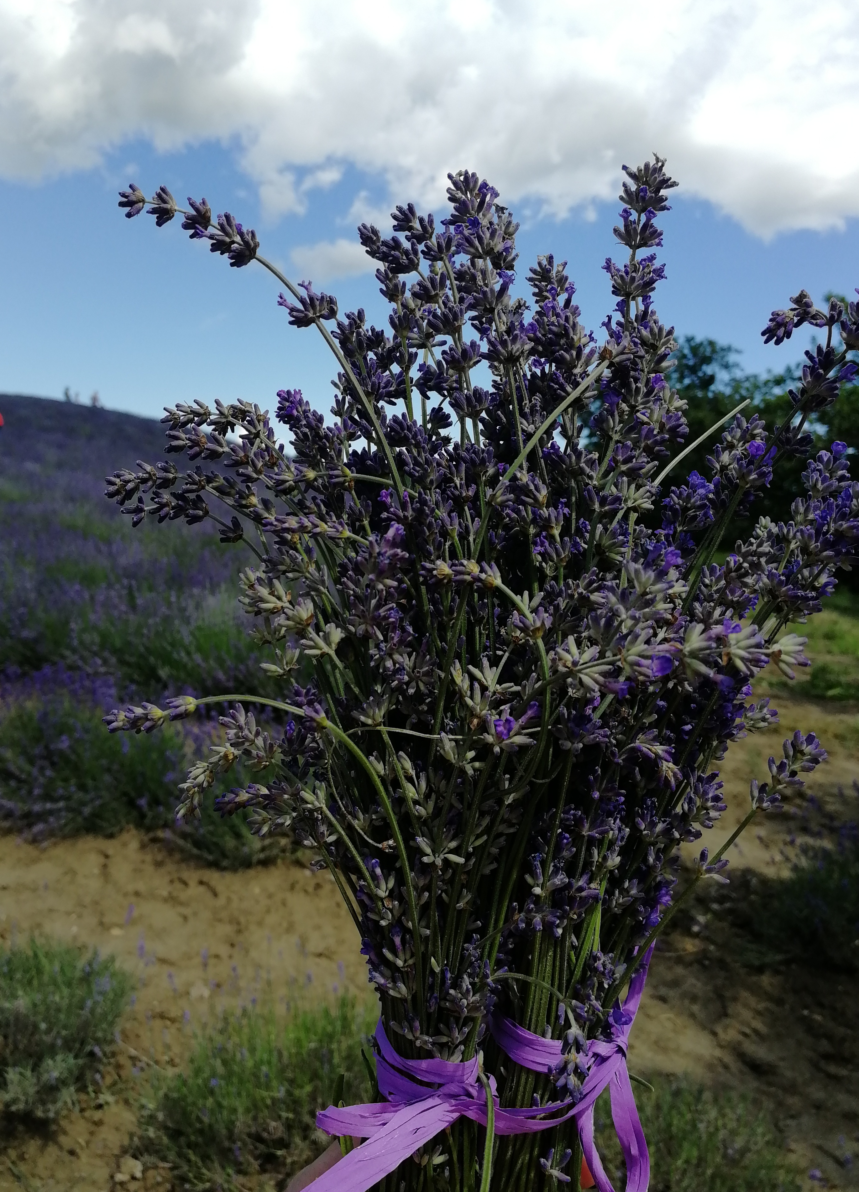 Dopo la salita (di almeno 45 minuti), arriviamo finalmente in piano e qui, immediatamente, assistiamo allo spettacolo: i campi si tingono di viola, il profumo della lavanda esalta l’aria. Lunghe e ordinate file di crespi violacei si arrampicano in salita e in discesa, quasi confondono la vista. Tra qualcuno accasciato sull’asfalto per scattare una fotografia memorabile e altri che si riposano all’ombra di un albero, riusciamo a passare in mezzo ai campi di lavanda. Le migliaia di api che volano sfrenatamente da una parte all’altra non sembrano neanche accorgersi della nostra presenza. Con tutto quel ben di Dio, direte.