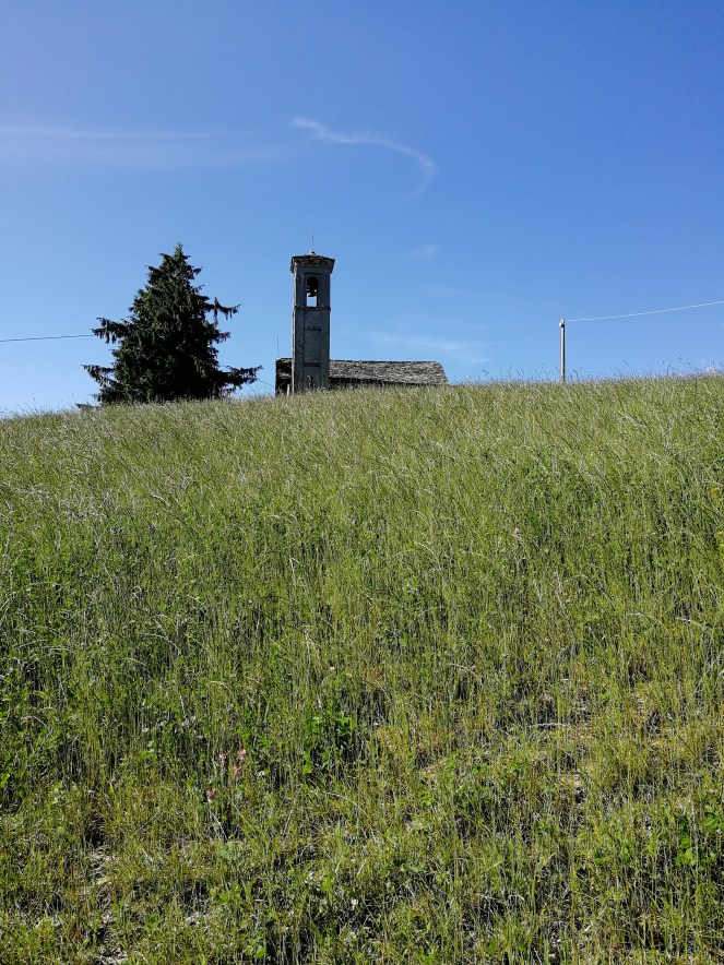 Superiamo i campi e continuiamo (finalmente) in piano. L’atmosfera è più tranquilla, ci sono meno persone intorno a noi e la via è quasi completamente riparata dal sole grazie ai tanti alberi. Dopo aver superato qualche altra casa, arriviamo al crocevia con la strada provinciale. Qua potete scegliere: se scendete, dopo una ventina di minuti tornerete alla Pieve di San Giovanni, per poi raggiungere la vostra macchina; se salite, in poco più di un chilometro, vi troverete di fronte alla Cappella di Sant’Anastasia. Dedicata alla santa che fu arsa viva dall’imperatore Diocleziano, per aver aiutato e curato i cristiani perseguitati e per aver rifiutato di abiurare il cristianesimo, fu eretta dai monaci benedettini intorno al 1050 in cima a una collina, isolata da tutto, quasi nascosta.